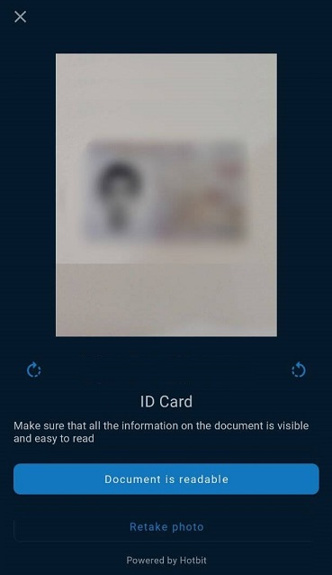 پس از گرفتن عکس، اگر از خوانا بودن مدرک خود اطمینان دارید، روی گزینه «Document is readable» کلیک کنید و با همین منوال از پشت مدرک خود نیز یک تصویر واضح تهیه کرده و آن را بارگزاری کنید و مجدد روی گزینه «Document is readable» کلیک کنید.